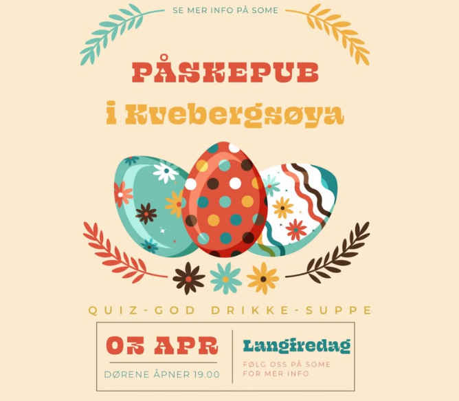 Ta med venner, familie eller naboen og bli med på en sosial påskekveld i Kvebergsøya. Vi gleder oss til å se dere!