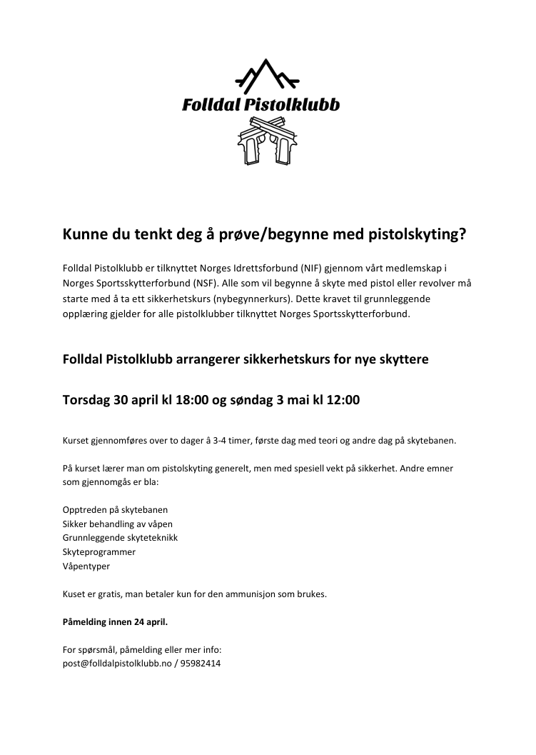 Folldal Pistolklubb arrangerer sikkerhetskurs for nye skyttere