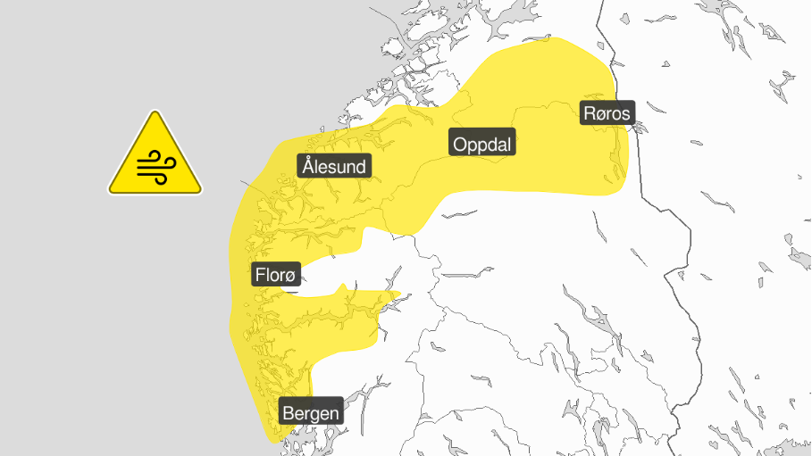 Varsel om lokalt kraftige vindkast - gult nivå